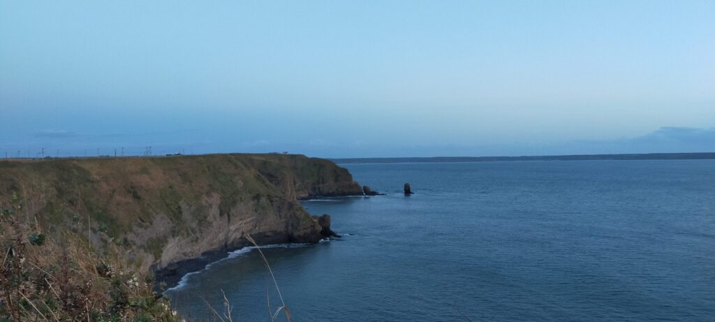 霧多布半島の東の端にある「霧多布岬」は、キャンプ場から近く、徒歩で先端まで行くことができ、海から昇る朝日も楽しむことができます。今回は雲が広がっていたため海からの朝日は見られませんでしたが、朝日に照らされた海の風景は本当に素晴らしいものでした。