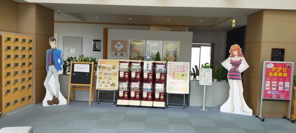 霧多布岬キャンプ場のある浜中町は「ルパン三世」の原作者モンキー・パンチさんの故郷であるため、あちこちでルパン三世に会うことができます。ゆうゆの中にも愛車とともにその雄姿がありました。