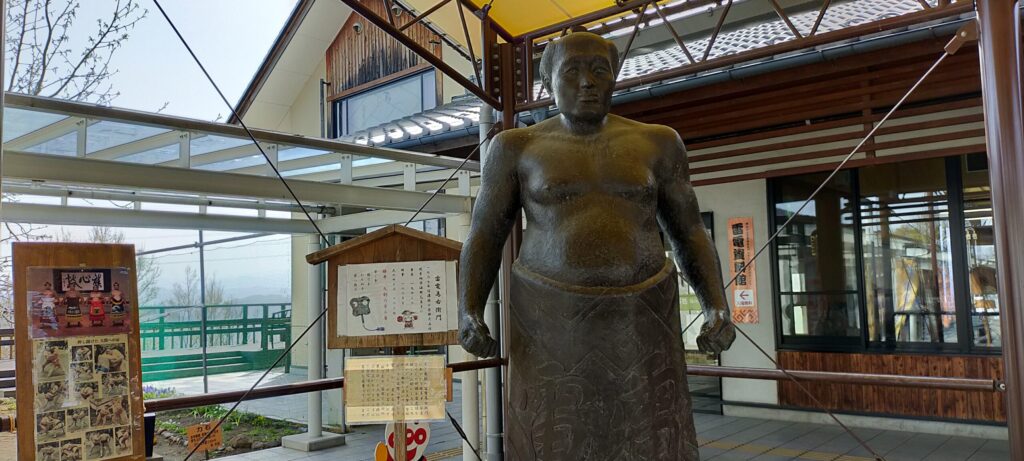 「そば茶屋 さくら」から10分弱の場所に「道の駅 雷電くるみの里」に大きな力士像が建っています。