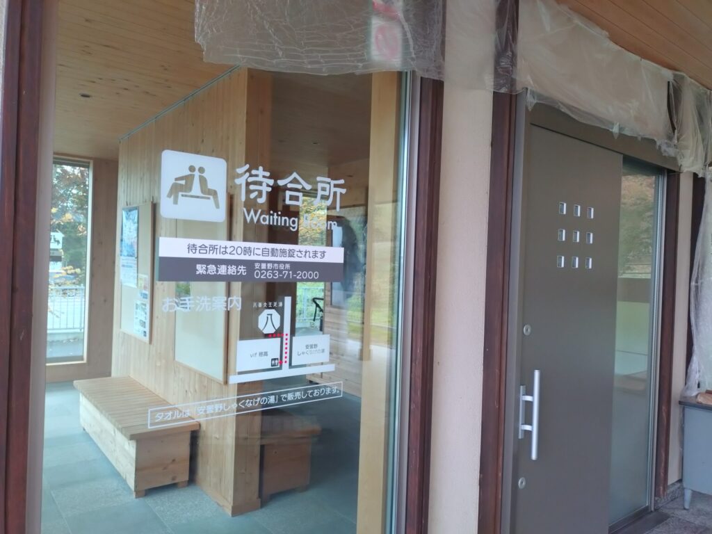 「八面大王足湯」の隣にはバスの待合所があり、「あづみ野周遊バス」や「中房温泉行きバス」が停車します。観光や温泉地めぐり登山の拠点としても便利です。