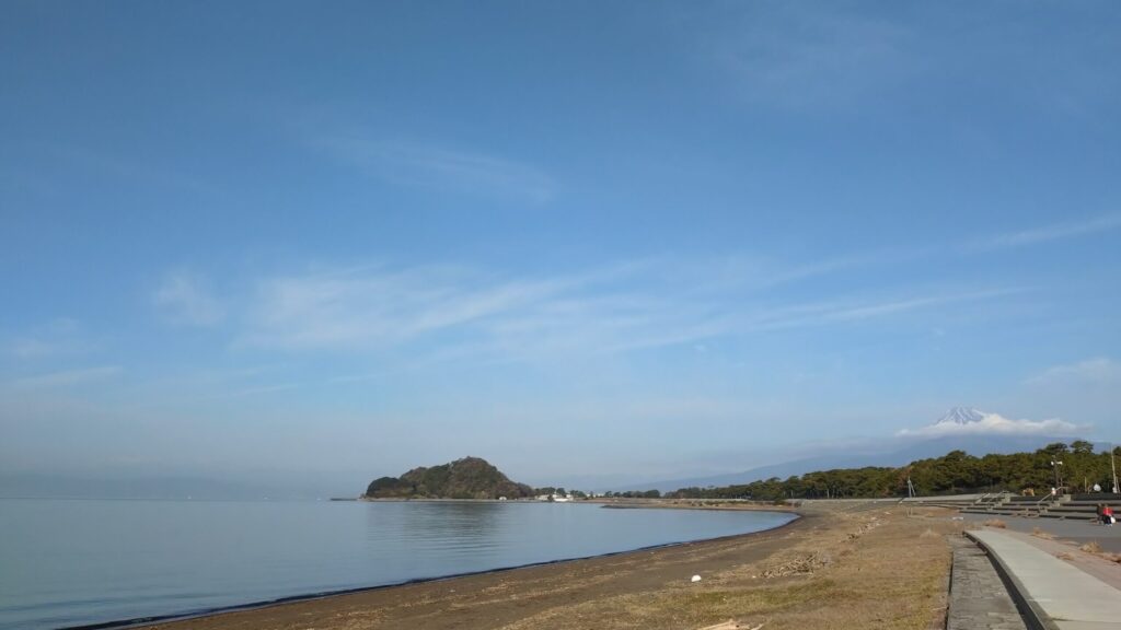 朝、宿泊先から沼津港の市場へ向かう前に、せっかくなので海岸をのんびり散歩しました。