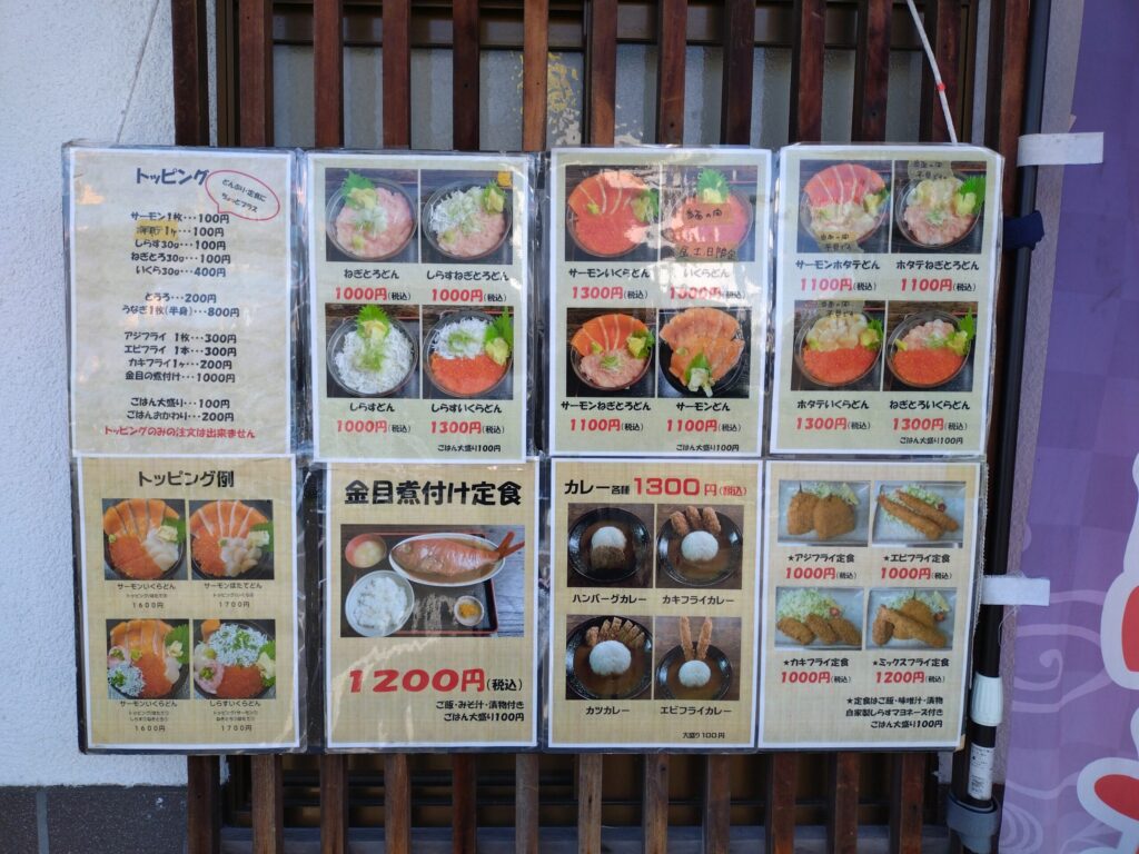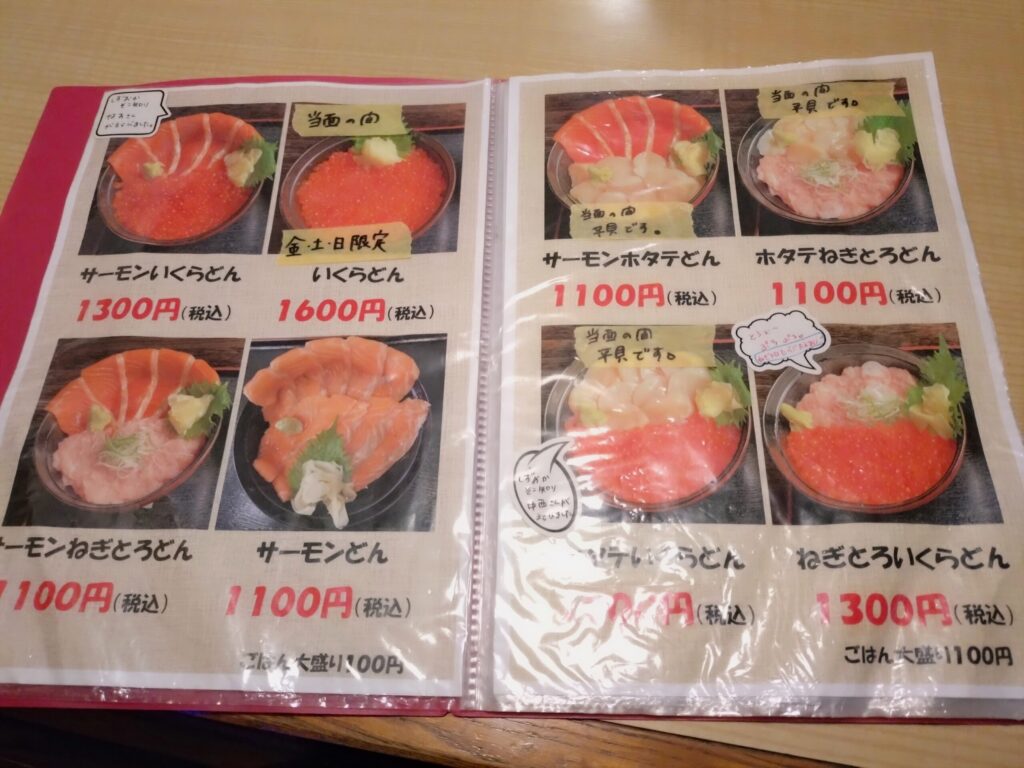 アジフライがおいしいと聞いていたので、最初はアジフライ定食にしようと思っていましたが、海鮮丼の種類が思っていた以上に豊富。