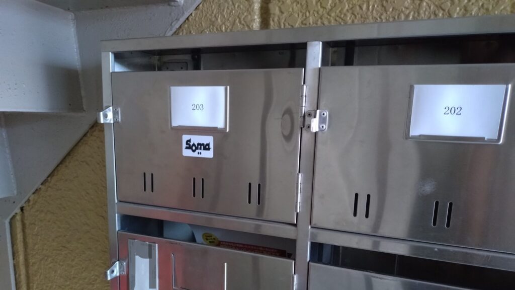 建物の階段脇にあるポストを見ると、さりげなく「SOMA」の文字が。