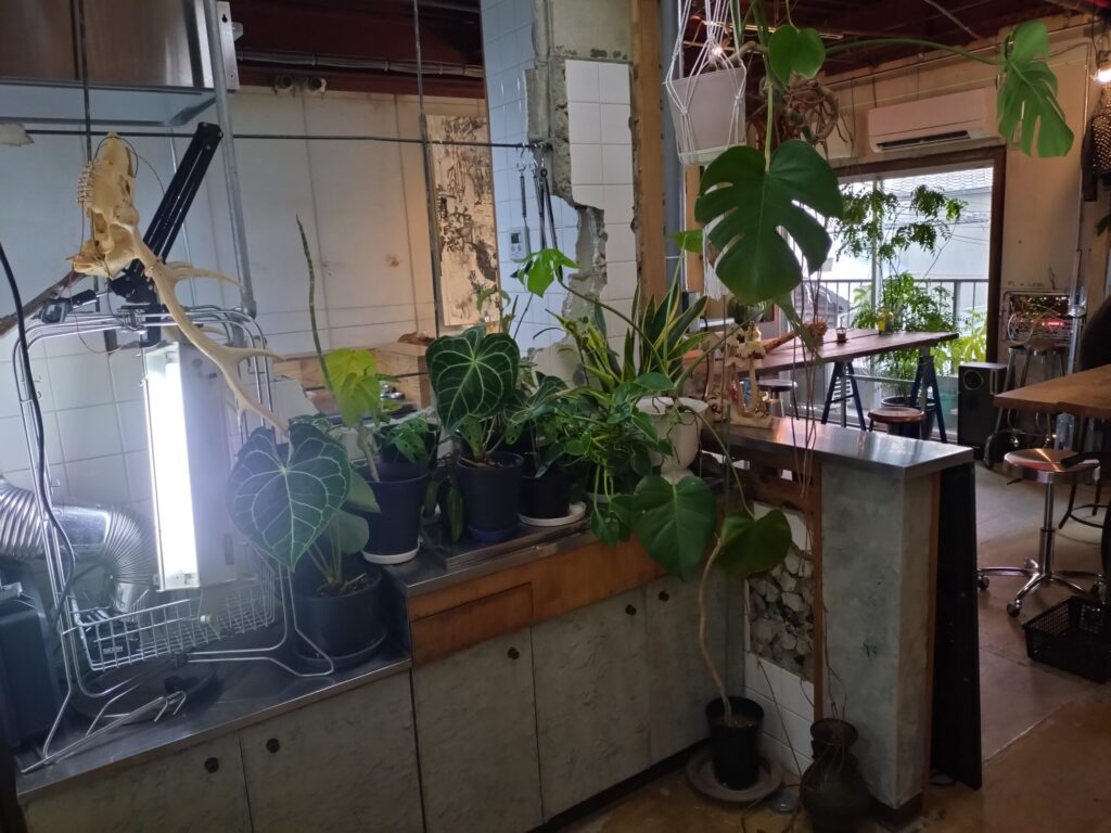 ドアを開けると、店内はこんな雰囲気。開放感のある空間に、観葉植物が随所に配置されていて、外観から受けた印象とはまた違う、心地よさそうな空気が広がっていました。