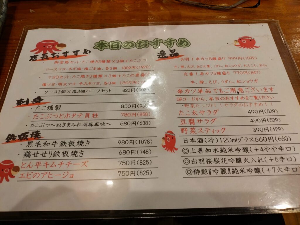 そして夜は、宿泊したホテル近くにあった「たこ焼き酒場 たこ太」で大阪らしさを味わってきました。
